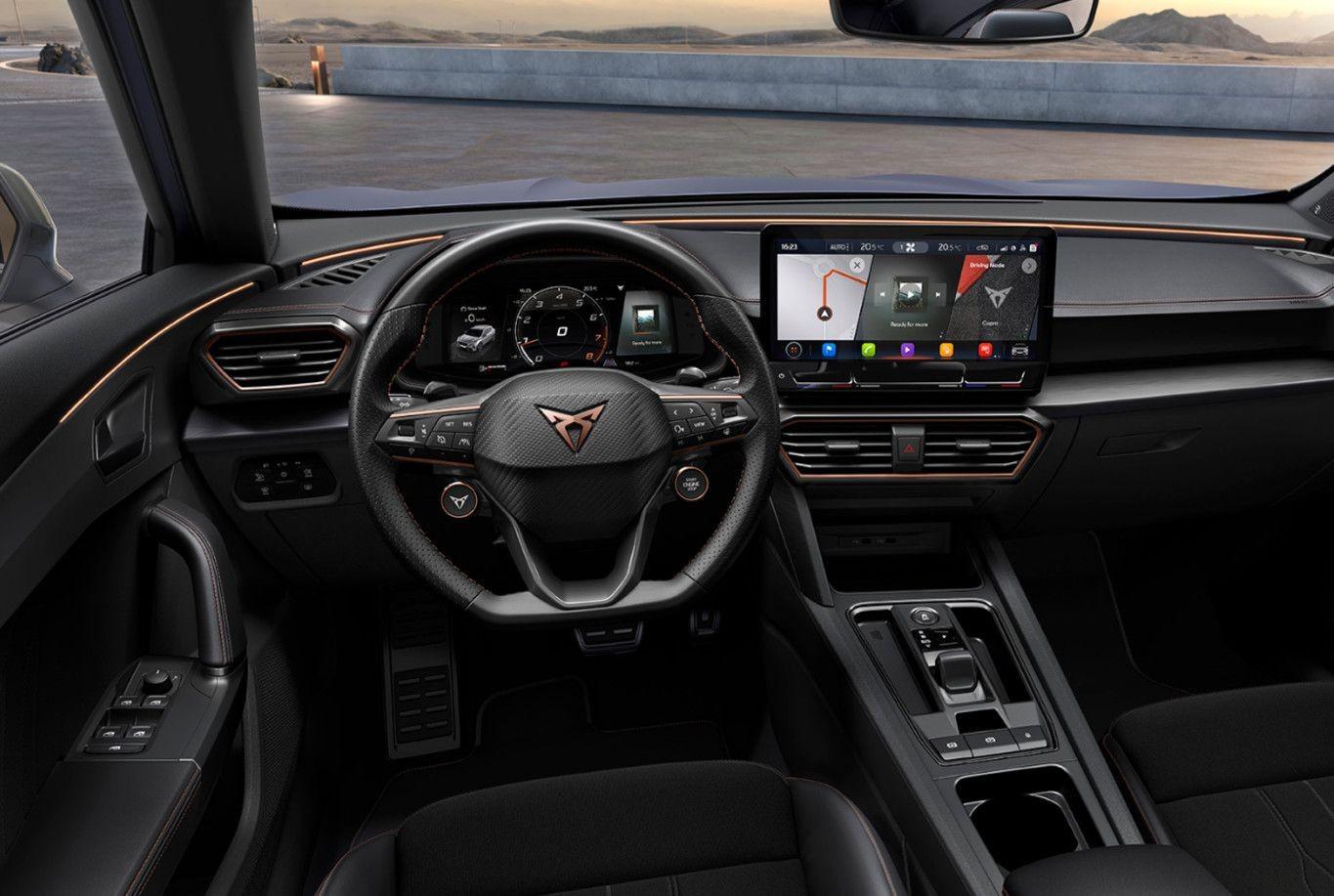 —- Ambiente-Beleuchtung Smart Ambient Light, Einstiegsleisten (Aluminium) vorn, beleuchtet, Fahrassistenz-Paket: Travel Assist, Fensterzierleisten schwarz hochglänzend, Hybrid 180 kW (Motor 1,4 Ltr. – 110 kW TSI), Karosserie: 5-türig, Kombiinstrument digital (virtual cockpit), Lendenwirbelstütze Sitz vorn links, verstellbar, Lendenwirbelstütze Sitz vorn rechts, verstellbar, Licht- und Sicht-Paket (Innenspiegel mit Abblendautomatik / Licht- und Regensensor / Lichtassistent (Coming Home, Leaving Home)), Mittelarmlehne hinten, Otto-Partikelfilter (OPF), Parkbremse elektrisch, Radstand 2680 mm, Seitenscheiben hinten und Heckscheibe abgedunkelt, Sitz vorn links höhenverstellbar, Sitz vorn rechts höhenverstellbar, Sitzbezug / Polsterung: Stoff, Sonnenblende links mit Spiegel (beleuchtet), Sonnenblende rechts mit Spiegel (beleuchtet), USB-Ladeanschlüsse (2-fach, Typ C) für 2.Sitzreihe, Warnanlage für Sicherheitsgurt-System, Bluetooth-Schnittstelle mit Freisprecheinrichtung integriert, USB-Schnittstelle vorn (2-fach, Typ C), Anti-Blockier-System (ABS), Antriebs-Schlupfregelung (ASR), Antriebsart: Frontantrieb, Elektron. Differentialsperre (XDS), Elektron. Stabilitätskontrolle (ESC), Wegfahrsperre (elektronisch), Getriebe 6-Gang – Doppelkupplungsgetriebe DSG, Klimaanlage Climatronic 3-Zonen, Airbag Beifahrerseite abschaltbar, Airbag Fahrer-/Beifahrerseite, Fensterheber elektrisch vorn + hinten mit Komfortschaltung, Isofix-Aufnahmen für Kindersitz an Rücksitz, Kopf-Airbag-System, Rücksitzlehne geteilt/klappbar (1/3-2/3), Rücksitzlehnen umklappbar mit Fernentriegelung im Kofferraum, Seitenairbag, Seitenairbag vorn mitte (Central Airbag), Sport-Schalensitze vorn mit integrierten Kopfstützen, Fahrassistenz-System: Fahrprofilauswahl (CUPRA Drive Profile), Dachreling schwarz, hochglänzend, Fahrassistenz-System: Automatische Distanzregelung (ACC), Fahrassistenz-System: Verkehrszeichenerkennung, Rückfahrkamera, Notrufsystem, Servolenkung elektro-mechanisch, Außenspiegel elektr. verstell-, heiz- und anklappbar mit Spiegelabsenkung und Welcome Light, Blinkleuchten LED in Außenspiegel integriert, Fahrassistenz-System: Totwinkel-Assistent mit Auspark-Assistent, Spurwechselassistent und Ausstiegswarnung, Heckleuchten Voll-LED mit dynamischem Lichtband (Infinite Light) (Heckleuchten LED mit dynamischem Blinklicht), Nebelscheinwerfer LED mit Abbiegelicht, Scheinwerfer Voll-LED (Leuchtweitenregelung automatisch / Tagfahrlicht LED), Fahrassistenz-System: Parklenkassistent mit Einparkhilfe vorn und hinten (Einparkhilfe hinten), Fahrassistenz-System: Müdigkeitserkennung, Fahrassistenz-System: Spurhalteassistent (Frontkamera), Reifenkontroll-Anzeige, Start/Stop-Anlage, Panorama Schiebe-/Hebedach elektrisch, Winter-Paket (Sitzheizung vorn), Full Link (MirrorLink, Apple CarPlay und Android Auto), 3-Punkt-Automatikgurte vorn und hinten, 3. Bremsleuchte, 7 Lautsprecher, Audio-Navigationssystem Plus inkl. 12″ Touchscreen-Farbdisplay und Sprachsteuerung, Bremssättel vorn und hinten schwarz lackiert, Chrom-Applikationen im Innenraum, CUPRA CONNECT vorbereitet für die Aktivierung der Dienstpakete Sicherheit/Fernzugriff und Online Infotainment, Dachhimmel schwarz, Gepäckraumbeleuchtung (LED), Heckscheibenwischer inkl. Intervallscha
