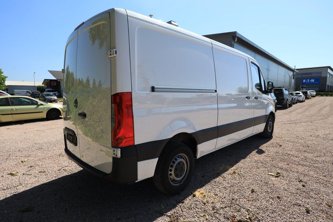 Klimaanlage geregelt (Tempmatik), Scheinwerfer LED High Performance, Multimediasystem MBUX (Touchscreen 7″): (Freisprecheinrichtung Bluetooth, Lenkrad mit Multifunktion), Holzfussboden im Laderaum, Verkleidung im Lade-/FG-Raum: Kunststoff hoch (bis Dach), Fahrassistenz-System: aktiver Bremsassistent, Laderaumleuchte LED, Außenspiegel elektr. verstell- und heizbar, beide, Reserverad in Fahrbereifung, Ablagefach oberhalb Frontscheibe, Lenkrad (Lenksäule mech. verstellbar), Vlies-Batterie 92 Ah, Reserveradhalter unter Rahmenende inkl. Wagenheber, Deckenleuchte im Laderaum mit Türkontakt, Sitze im Fahrerhaus: Fahrersitz mit Armlehne, Wagenheber, Leitungskanal an Seitenwand